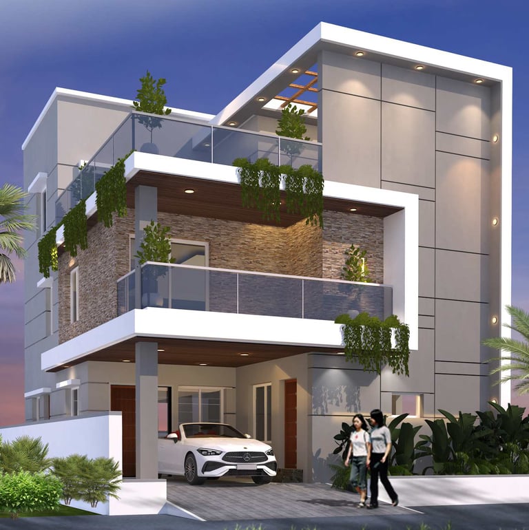 Our experience with Jaydev Constructions has been exceptional. The team understood our needs and delivered a stunning contemporary villa that exceeds our expectations. The design is not only aesthetically pleasing but also practical for everyday living. We appreciate the use of high-quality materials and the thoughtful layout that maximizes natural light. The ambiance created by the contrasting tones and textures is simply breathtaking. We highly recommend Jaydev Constructions to anyone looking to invest in a modern home that embodies luxury and comfort.